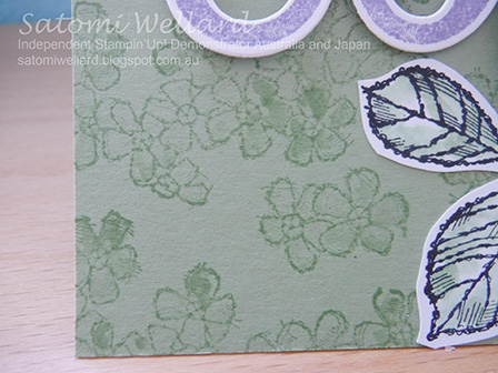 I stamped background with Pear Pizzazz and shaded the little flowers with an Aqua Painter to keep the water coloring look.